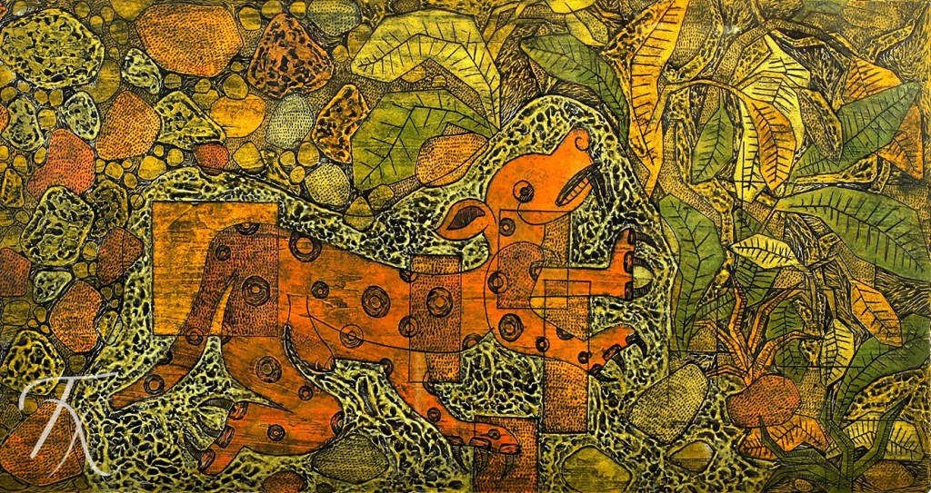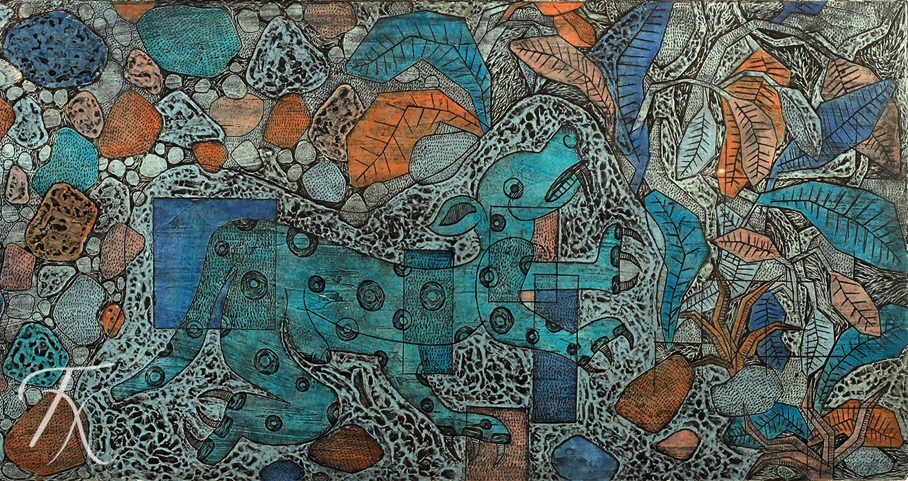 La colografía es una técnica que conjunta la pintura y el grabado, permitiendo experimentar con las posibilidades expresivas del manejo del color y las texturas táctiles.